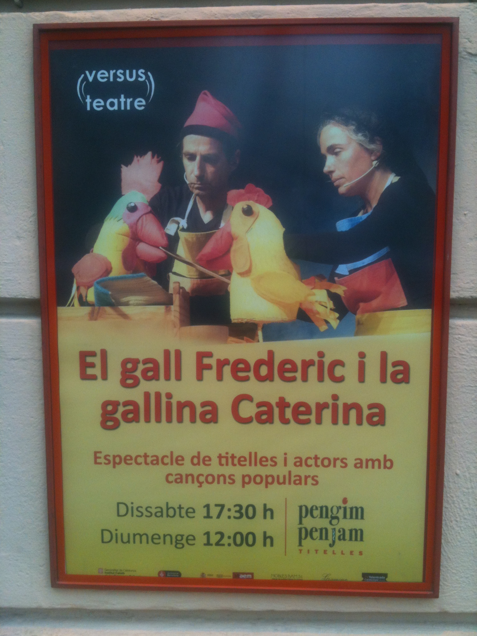Nosaltres hem vist El gall Frederic i la gallina Caterina al Versus Teatre, on actuaran els caps de setmana fins a final d’aquest mes de gener. Si teniu nens de fins a cinc anys, no us ho perdeu.