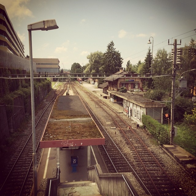 Les estacions secundàries, molt sovint destartalades i sempre més tranquiles que els grans hubs, tenen un gran encant. Parlen, si les escoltes amb atenció, d’històries de gent humil que va i bé per feina; de somnis de gent què toca de peus a terra, i de superació d’obstacles tot i què les oportunitats que tingues no siguin gaire bones. Fixeu-vos a la imatge: la supervivència de la casa enfront del gran edifici modern; la vida que s’arrapa allà on pot, al teulat de la marquesina i als marges del parc.